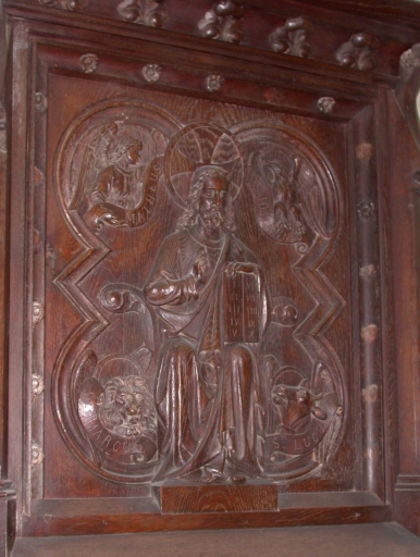 - chêne, mouluré, décor dans la masse, décor en bas relief, teint, vernis