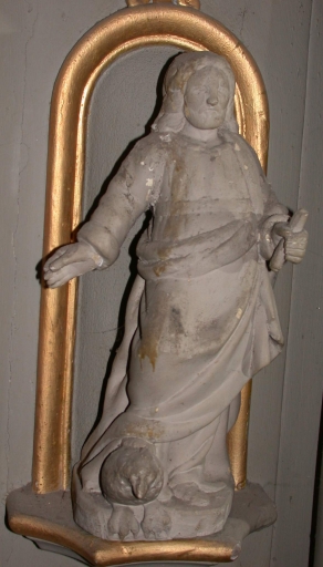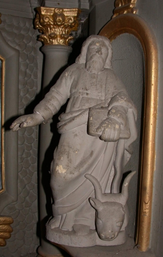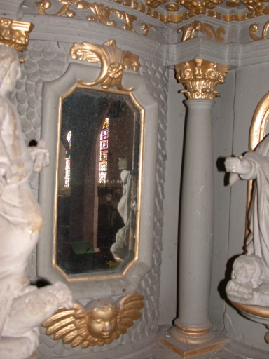 Deux gradins d'autel et exposition à miroirs avec 4 statuettes : Evangélistes