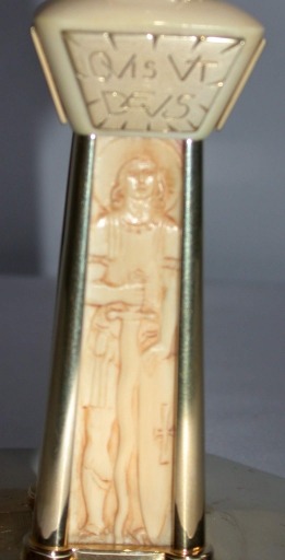L'ensemble a été fabriqué par l'orfèvre parisien Albert Schwartz en 1945, comme l'indique le certificat de consacration par Mgr Roques.