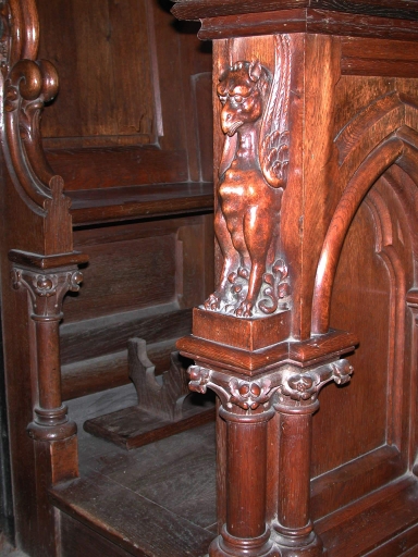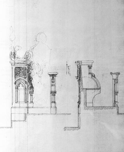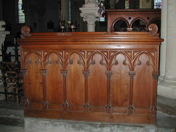 Cet ensemble a été réalisé par le menuisier rennais Augerie, pour 2000 F., sur les dessins d'Arthur Regnault qui conçoit autour de 1895 l'ensemble du mobilier de l'église.