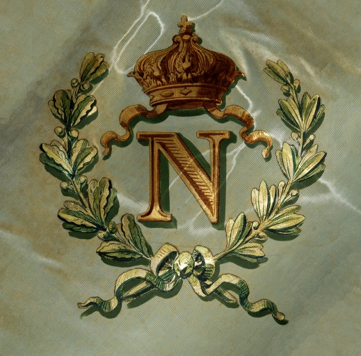 Inscription peinte : DONNEE / PAR / LE PRINCE IMPERIAL / A LA / MUSIQUE D'ARGENTRE / ILLE ET VILAINE / 1868. Devise peinte sur un phylactère au milieu des instruments : Aimons nous les uns les autres.