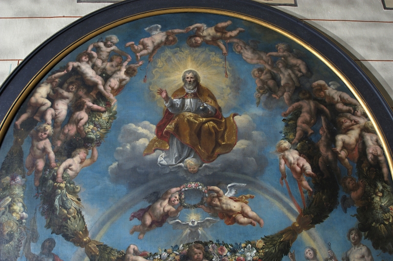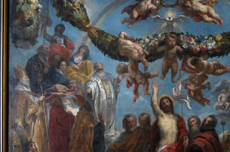 Ce tableau illustrant le Triomphe de la Religion a été attribué au peintre anversois Jacob Jordaens ; il provient de la chapelle du château du Plessis.