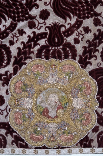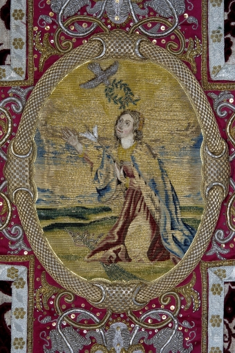 - PIOBJT Oeuvre remarquable tant pour son ancienneté et sa rareté que d'un point de vue technique : les broderies de soie, d'or et d'argent sont d'une qualité exceptionnelle.
