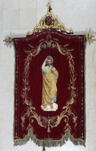 Bannière de procession paroissiale : Saint Pierre, Vierge à l'Enfant,