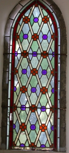 Ensemble de 3 verrières géométriques : verre transparent (coloré) : taillé ; 48 h. Mauvais état. 4e quart 19e siècle. Fig. 4.