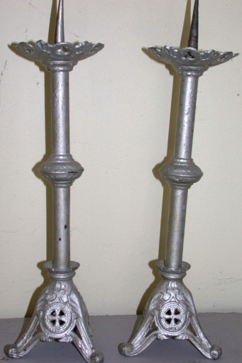 Paire de Chandeliers d´autel : métal : fonte, peint ; repeint ; 35,5 h. 4e quart 19e siècle. Fig. 2.