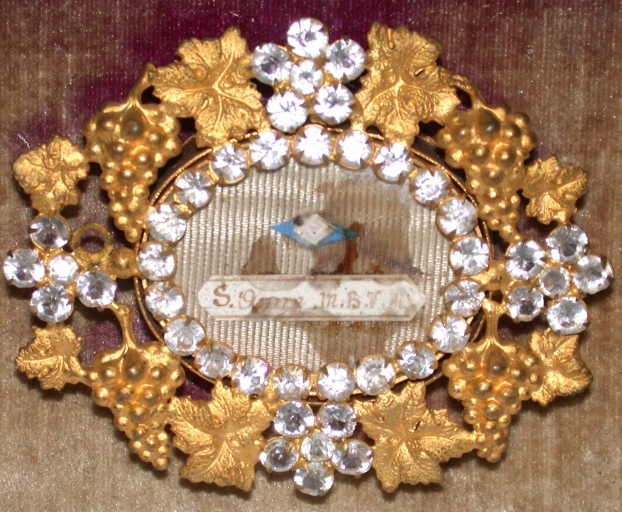 Inscription manuscrite sur un papier dans le médaillon : S. Anne. M. BVM.