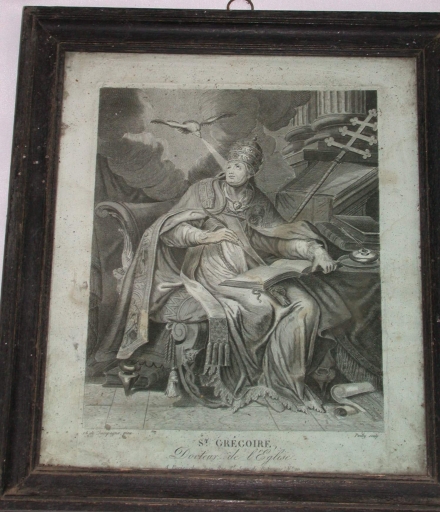 Inscription : S AUGUSTIN ; St GREGOIRE / Docteur de l'Eglise / Ph. de Champagne, Pinx / Poilly sculp / A Paris, chez Jean, Rue St Jean de Beauvais, N°10.