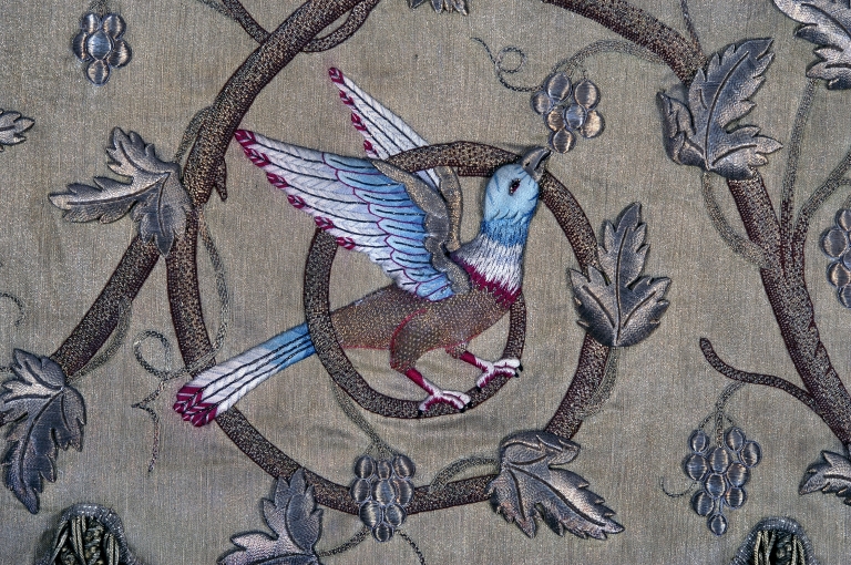 - soie, jaune drap d'or, application sur textile, adjonction d'éléments