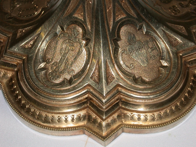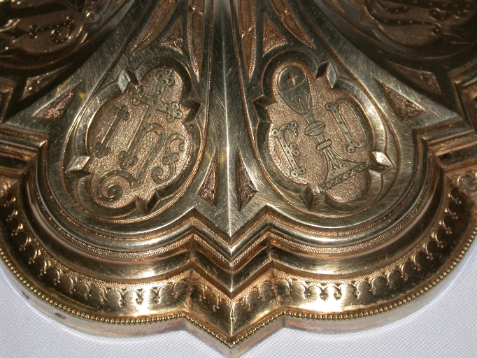 - argent, ciselé au trait, ciselé au mat, gravé, découpé, doré, fondu