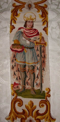 - soie, blanche tissu façonné, application sur textile, tapisserie au point, polychrome