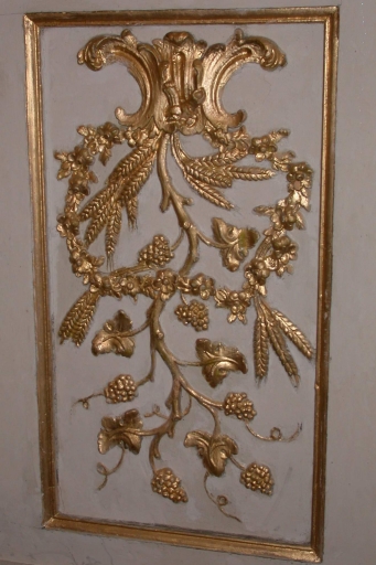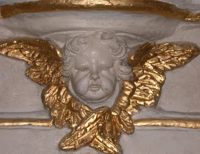- bois, mouluré, décor dans la masse, décor en ronde bosse, décor en bas relief, peint, faux marbre, peint faux or