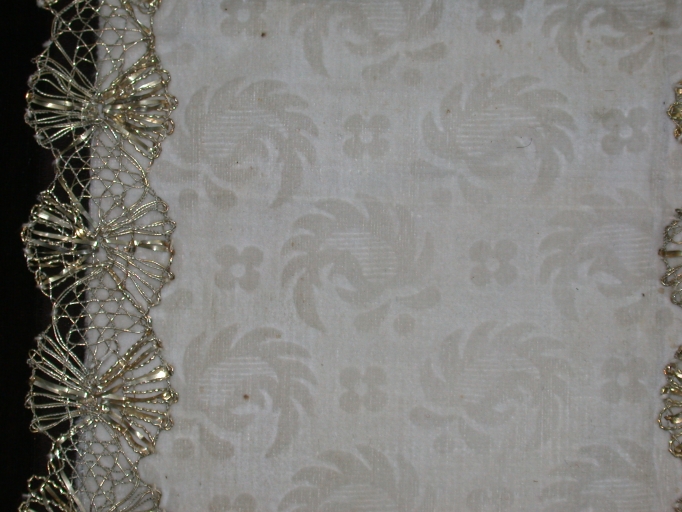 Il manque les étoles. Le velours blanc de l'une des dalmatiques est taché.
