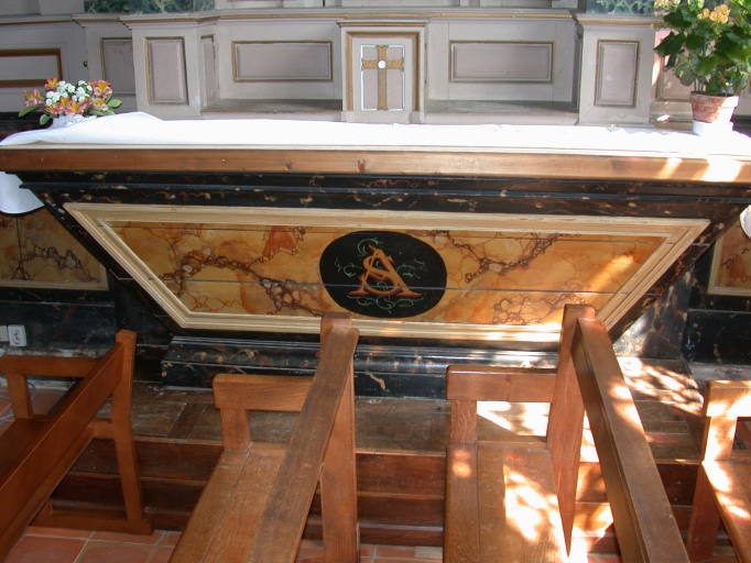 Présente quelques fentes sur les colonnes. La partie supérieure de l'autel a été refaite.