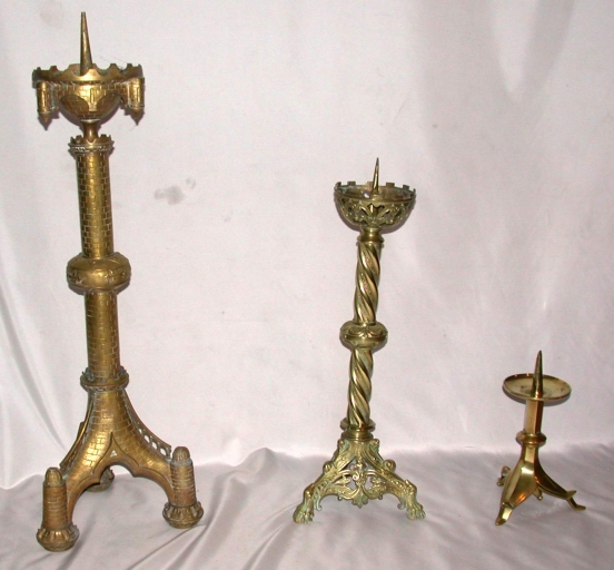 Chandeliers d´autel : métal : fondu ; 75 h. Oeuvre déposée. Limite 19e siècle 20e siècle. Représentation : faux appareillage. Fig. 8.