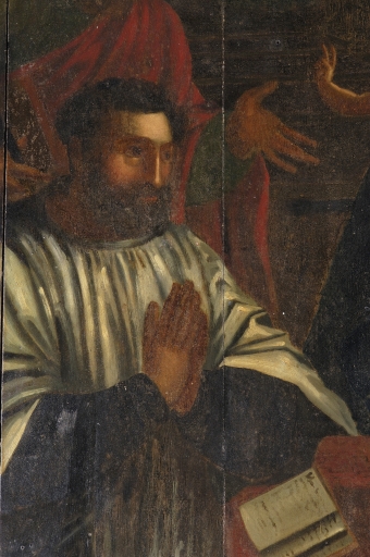 Les panneaux sont disjoints. Repeints probables des visages de la Vierge et de l'Enfant ainsi que du surplis du donateur.