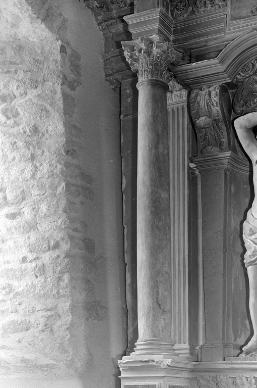 Polychromie des soubassements écaillée.