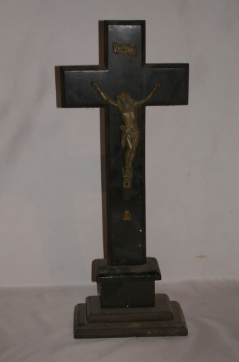 Croix de sacristie : bois : mouluré, peint ; métal : fondu ; 49,5 h. Oeuvre déposée. Fig. 15.