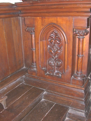 L'ensemble a été fabriqué par l'atelier des Frères Aubert, sculpteurs et menuisiers à Romillé, vers 1883 (attribution stylistique).