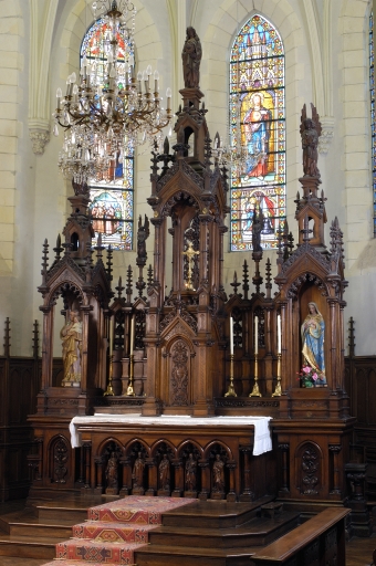 Ensemble du maître-autel : autel, tabernacle, 2 gradins d'autel, exposition, retable, 3 degrés d'autel,