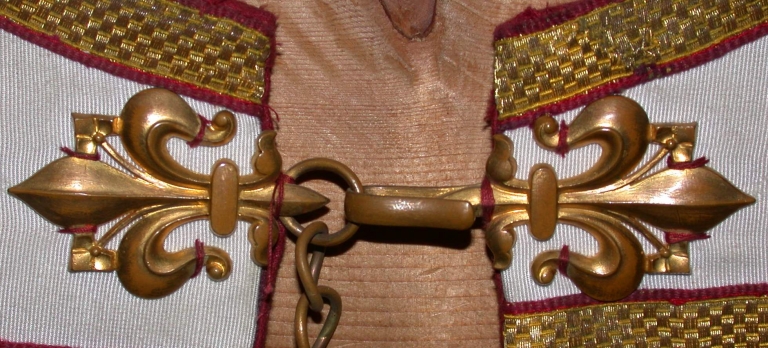 Marque tissée sur étiquette : MAISON E. EVELLIN / [losange horizontal, lettres E E séparées par une hermine] / RENNES / 7, Rue d´Antrain.