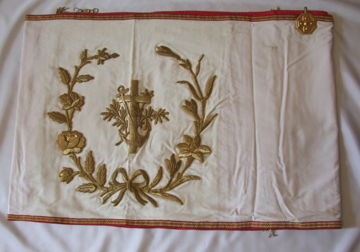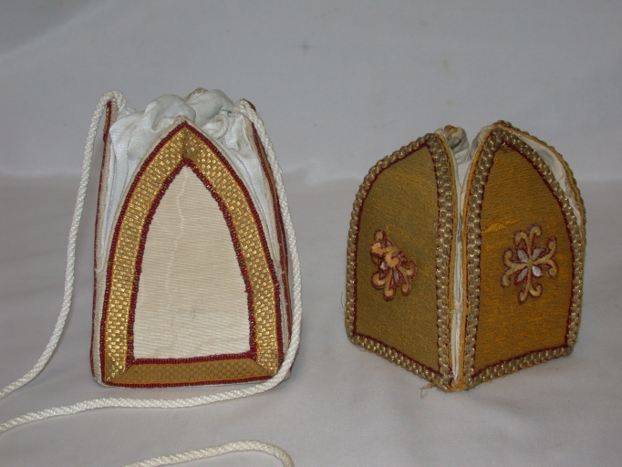 Bourse du viatique : soie (blanche) : gros de Tours, moiré, application sur textile ; fil métal : doré ; 11,5 h. 1er quart 20e siècle. Fig. 18.