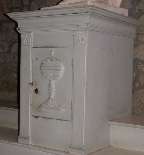 L'ensemble de l'autel a été exécuté vers 1966 en remployant un tabernacle de 1836.