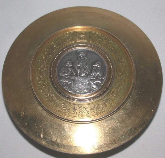 Les poinçons sont sur la coupe, le pied et la patène. Signature sur les médaillons du pied du calice : L. TRICARD. Inscription gravée sur une plaque sous le pied : F.L. / 28 - 29 - Juillet / 1907. Marque en creux : Mon ROUXEL-LE-DAIN / BETIN FRES SUCrs / RENNES.