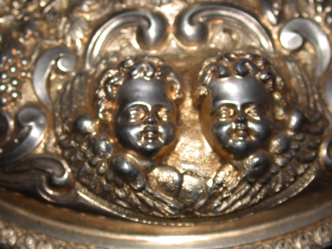 - argent, fondu, repoussé, ciselé au trait, ciselé au mat, doré