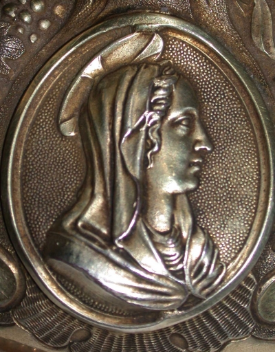 - argent, repoussé, ciselé au trait, ciselé au mat, doré