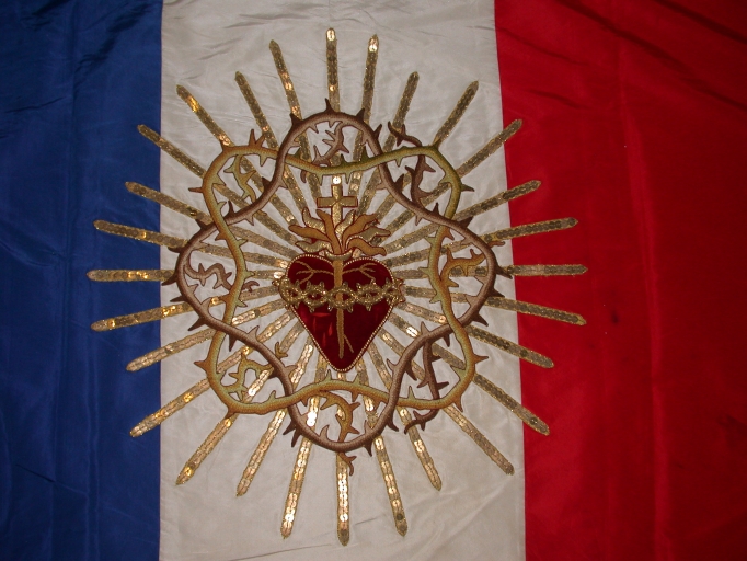 - soie, bleue, blanche, rouge faille française, brodé, polychrome, application sur textile, adjonction d'éléments