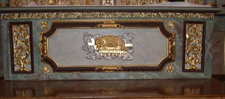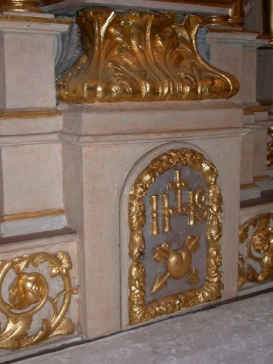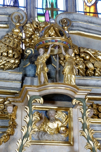 Ensemble du maître-autel : autel, tabernacle à dais d'exposition, retable, 2 gradins d'autel, 3 degrés d'autel,