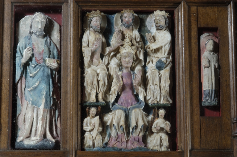 Retable de la Vierge : Vie de la Vierge, Saint Jean-Baptiste, Sainte Barbe, Saint Laurent, Saint Etienne, Saint Thomas reçoit la ceinture de la Vierge,