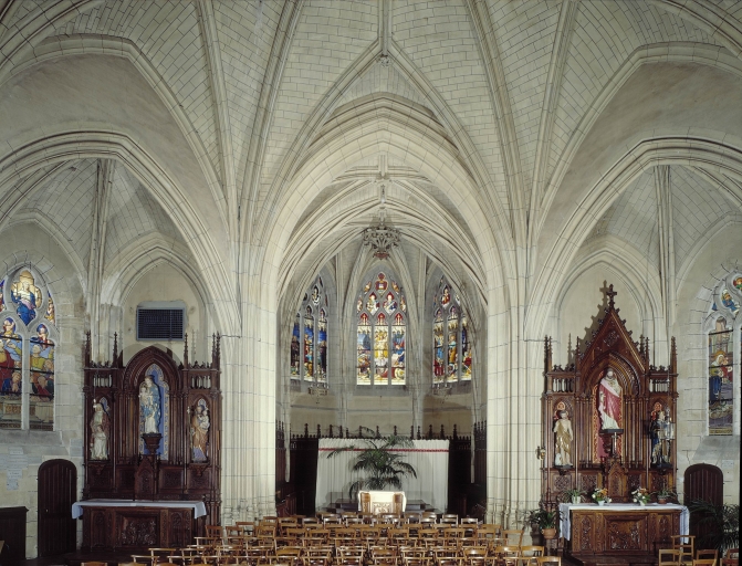 Si l´ensemble du mobilier est d'une facture assez banale, il a tout de même été réalisé par des ateliers rennais : la statue de la Vierge à l´Enfant (1863) par le sculpteur rennais Paul Louis Savary ; l'autel nord par Jean Julien Hérault (né en 1814 et décédé en 1888 à Rennes) ; le retable latéral sud par Bellanger en 1871 et 1875. Les confessionnaux ainsi que les boiseries du choeur ont été dessinés par Arthur Regnault. C´est ce dernier qui a aussi conçu le programme iconographique des sculptures et en partie des vitraux.