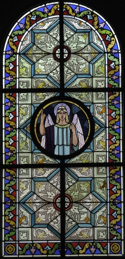 Verrières de type plus archéologique réalisées par les ateliers rennais Lecomte et Colin en 1889 et 1890. Les scènes sont limitées à un médaillon sur un fond de grisaille.