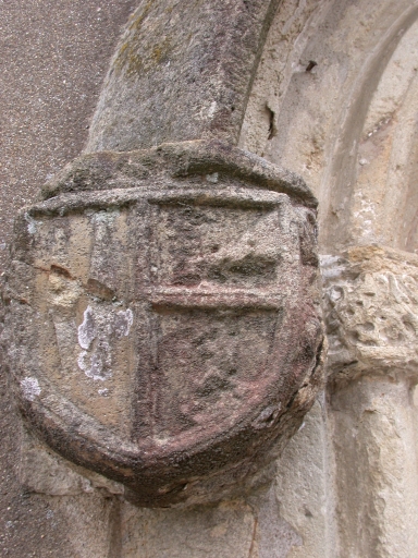 Les armoiries de Gilles de Tiercent et de Jeanne de la Lande, seigneurs de la Motte-Saint-Armel sont sculptées aux retombées de l'arc et permettent de dater le portail entre 1480, date de leur mariage et 1520, date de la mort de Gilles de Tiercent. Au-dessus de l'accolade se situaient d'autres armoiries, bûchées à la Révolution, et attribuables à François Loisel de Brie.
