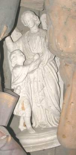 Statue : Ange : plâtre : moulé, peint ; 100 h. Oeuvre déposée ; le bras droit et les ailes ont disparu ; nombreux éclats dans le plâtre. 1er quart 20e siècle. Fig. 27.