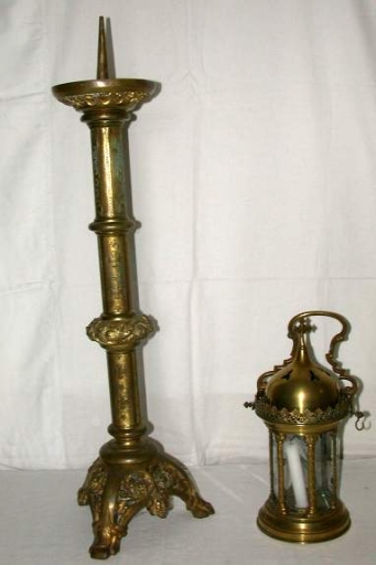 Paire de Chandeliers d´autel : métal : fondu, doré ; 70, 3 h. 4e quart 19e siècle. Représentation : ornementation végétale ; croix. Fig. 6.
