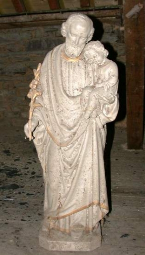 Statue : Saint Joseph et l´Enfant : plâtre : moulé, peint, peint doré ; 87,5 h. Oeuvre déposée ; la main droite de Joseph est désolidarisée. 1er quart 20e siècle. Fig. 23.