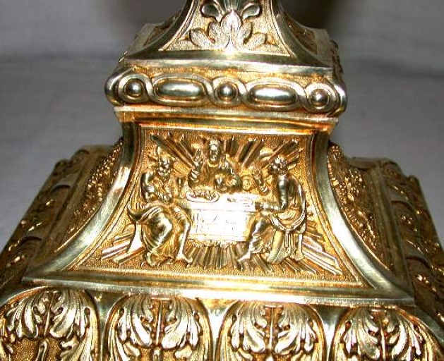 L'ostensoir est a été fabriqué par les orfèvres parisiens Martin et Dejean entre 1838, année de la mise en service du nouveau poinçon officiel, et 1849, année de la cessation d'activité des orfèvres.