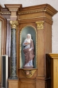 L'ensemble de l'autel du Bon Pasteur a probablement été fabriqué pendant la 1ère moitié du 19e siècle en remployant des éléments d'un ensemble du 17e siècle : devant d'autel, chute de fleurs, couronnement, niches avec leur entourage et leur angelot.