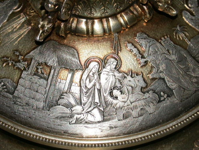 - argent, fondu, ciselé au trait, ciselé au mat, doré