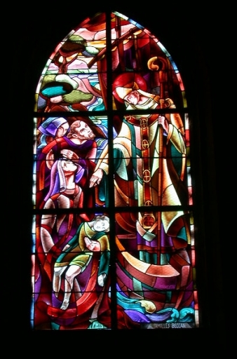 Baie 5 : DON DE LA FAMIILE JOS.MARQUET/MAUMEJEAN ; Baie 6 : FAMILLES BECCAN/MAUMEJEAN ; Baie 7 : ONUM PRESBYTRAUS/PASTORIS ET OVIUM ; Baie 8 : DON DE LA FAMILLE JULIEN RAISON ; Baie 9 : DON DES PAROISSIENS ; Baie 10 : FAMILLE JEAN MARIE DURAND ; Baie 12 : FAMILLE CELESTIN LERAY ; Baie 14 : FAMILLE THEOPHILE RACINEUX.
