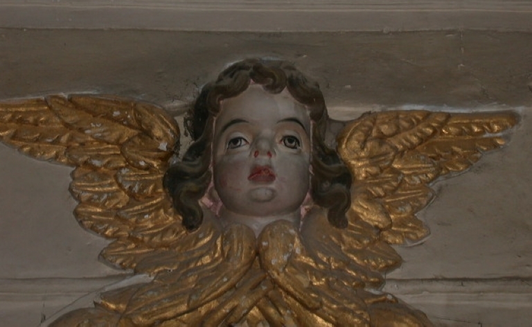 Le plancher en mauvais état. Beaucoup de lacunes de polychromie.