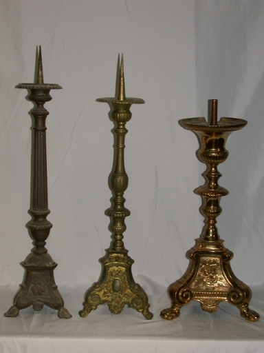 Série 3de 4 de Chandeliers d´autel : métal : fondu, argenté ; 66 h. oeuvre déposée. 2e moitié 19e siècle. Représentation : Vierge ; Christ ; coeurs enflammés. Fig. 12.