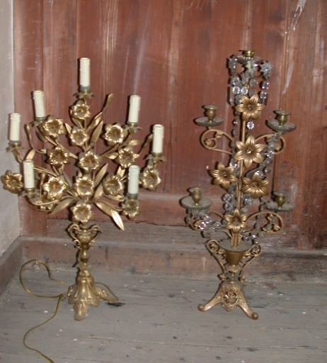 Série 2 de 6 Chandeliers d´autel : métal : fondu, doré ; 55,5h. Représentation : angelots. 2e moitié 19e siècle. Fig. 12.