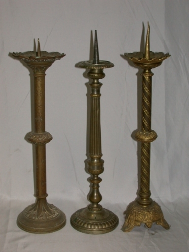 Série de 6 Chandeliers d´autel : métal : fondu, doré ; 62 h. Représentation : ornementation stylisée ; coeurs enflammés. 2e moitié 19e siècle. Fig. 12.