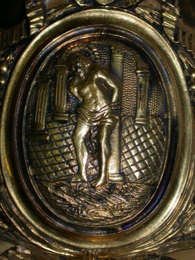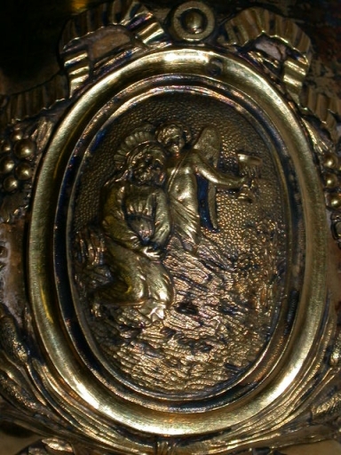 Les 4 poinçons sont sur la patène. Le titre et moyenne garantie sont sur la coupe et sur le pied. La grosse garantie, le titre et poinçons d'association et de fabricant sont sous le pied.