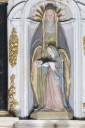 - calcaire, tourné, mouluré, décor dans la masse, décor rapporté, décor en demi relief, décor en haut relief, peint, polychrome, peint faux or