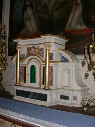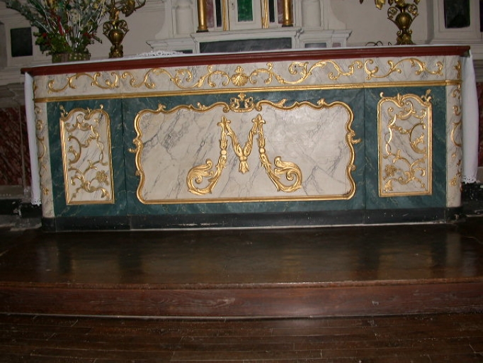 Ensemble de l'autel du Rosaire : autel, tabernacle, retable, degré d'autel,